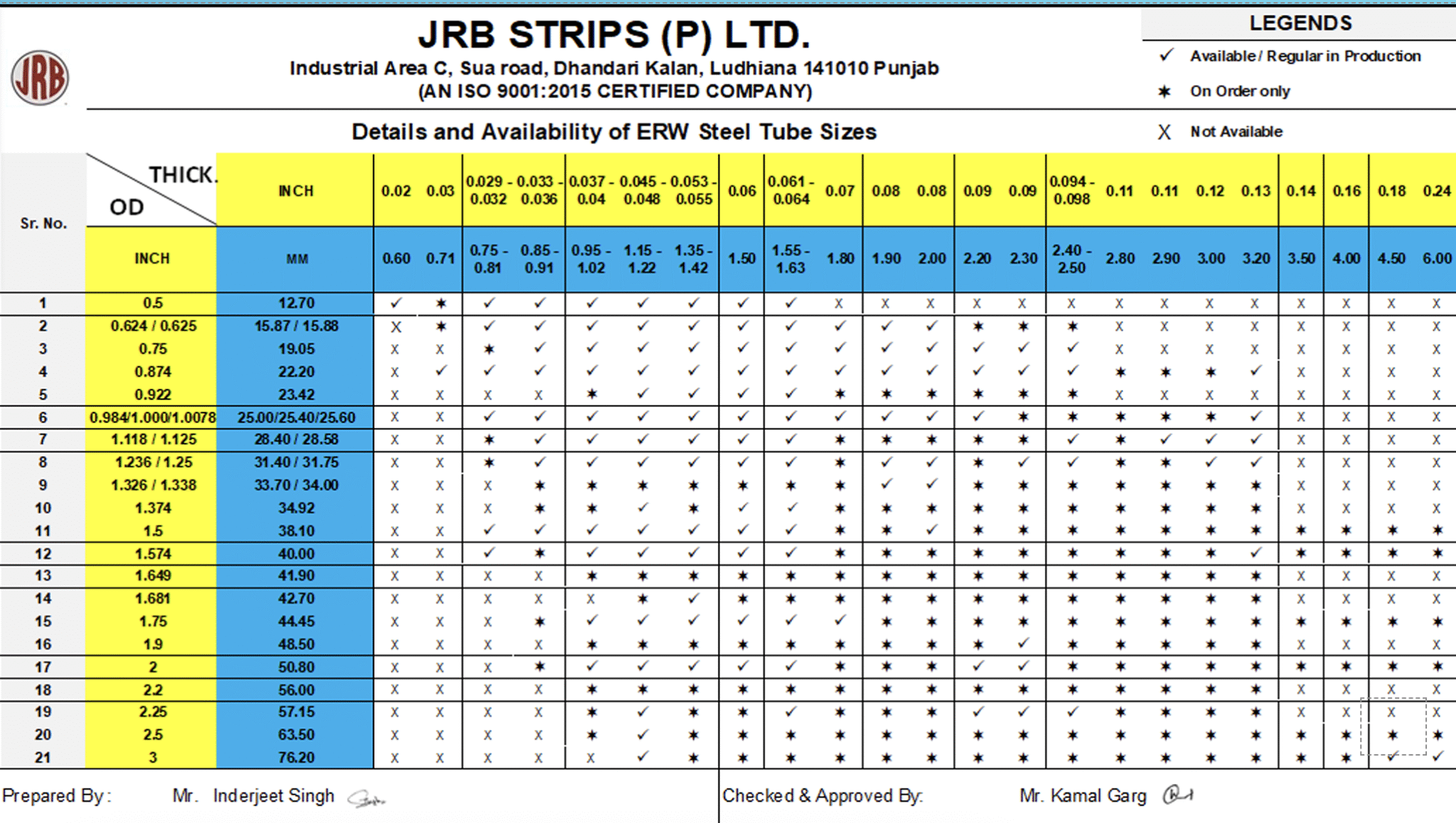 JRB Strips (p) Ltd. manufacture the steel tubes in accordance with national & international standards. The company has an integrated ERP system that controls material , production and inspection to ensure the on time delivery of quality products to our customers. to ensure the quality of our product JRB Strips (p) Ltd. obtain raw material from the world class steel mills Tata Steel, AM/NS & JSW.